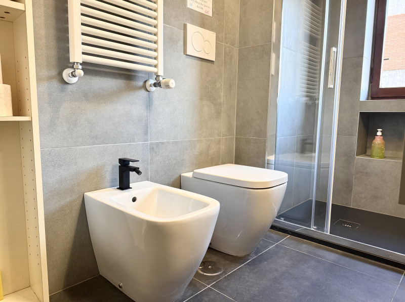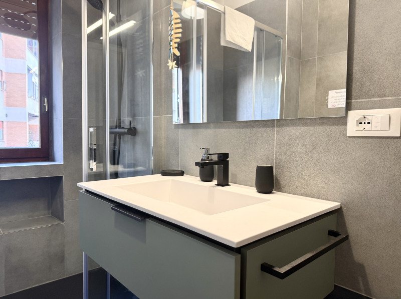 La camera da letto matrimoniale ti coccolerà con la sua atmosfera rilassante, resa ancora più speciale da una finestra che si affaccia sulla zona circostante. Il bagno moderno è una vera chicca: dotato di finiture eleganti e una doccia dal design esclusivo per un tocco di lusso indimenticabile durante la tua routine quotidiana.