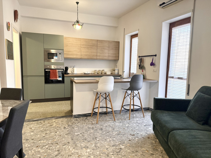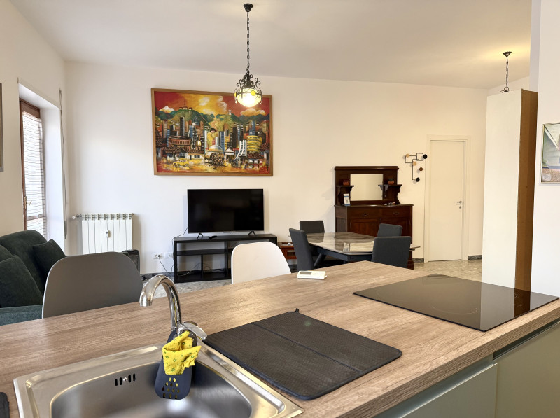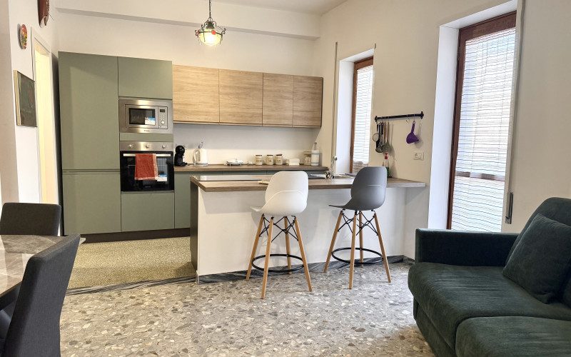 Entrando, sarai accolto da un ambiente ampio e luminoso, grazie alle grandi finestre che lasciano entrare la luce naturale e valorizzano l’arredamento contemporaneo. La cucina, perfetta per gli amanti della gastronomia, è dotata di una penisola americana spaziosa e di moderni fornelli a induzione: l’ambiente ideale per preparare pasti gustosi e condividere momenti conviviali.
