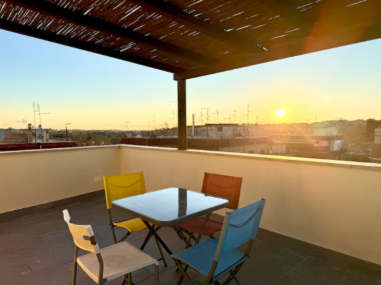 • Terrazza Privata: Il vero punto di forza dell’appartamento. Un angolo esclusivo dove potrete gustare la colazione all’aperto, rilassarvi con un bicchiere di vino al tramonto o semplicemente godervi la vista sulla città. L’arredamento da esterno rende la terrazza perfetta per momenti di puro relax o per una cena sotto le stelle. 🌇